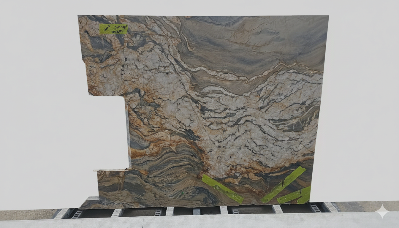 Fusion Quartzite is a highly durable natural stone quarried in Brazil, celebrated for its truly unique veining, colour, and movement—no two slabs are ever the same. Featuring bold waves and swirling patterns of grey accented with rich golden-brown tones, this spectacular quartzite delivers striking visual impact with refined elegance. Renowned for both its strength and beauty, Fusion Quartzite is an ideal statement material for kitchens, bathrooms, and feature spaces, bringing character and sophistication to residential and commercial interiors alike.